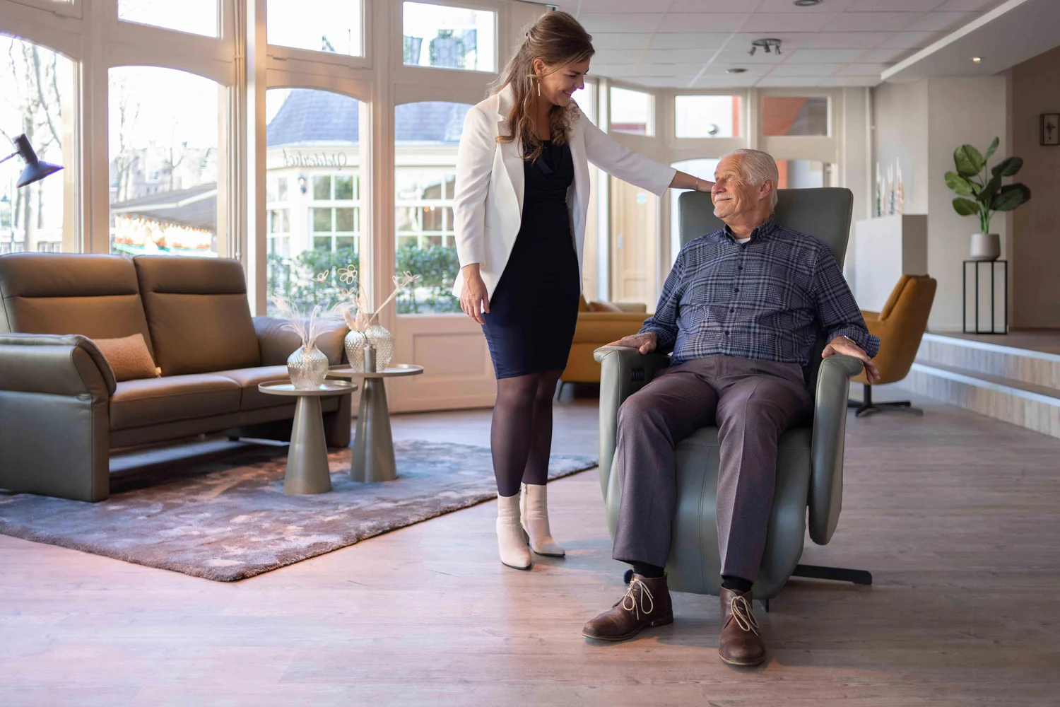 Misschien duizelt het u van de vele relax- en comfortfuncties die u kunt toevoegen aan uw relaxstoel. Onze ervaren zitadviseurs staan daarom voor u klaar om u te helpen met het samenstellen van uw ideale stoel. Aan de hand van uw wensen, uw eventuele klachten en uw lichaamsbouw kijken we samen welke stoel en welke functies het beste bij u passen.