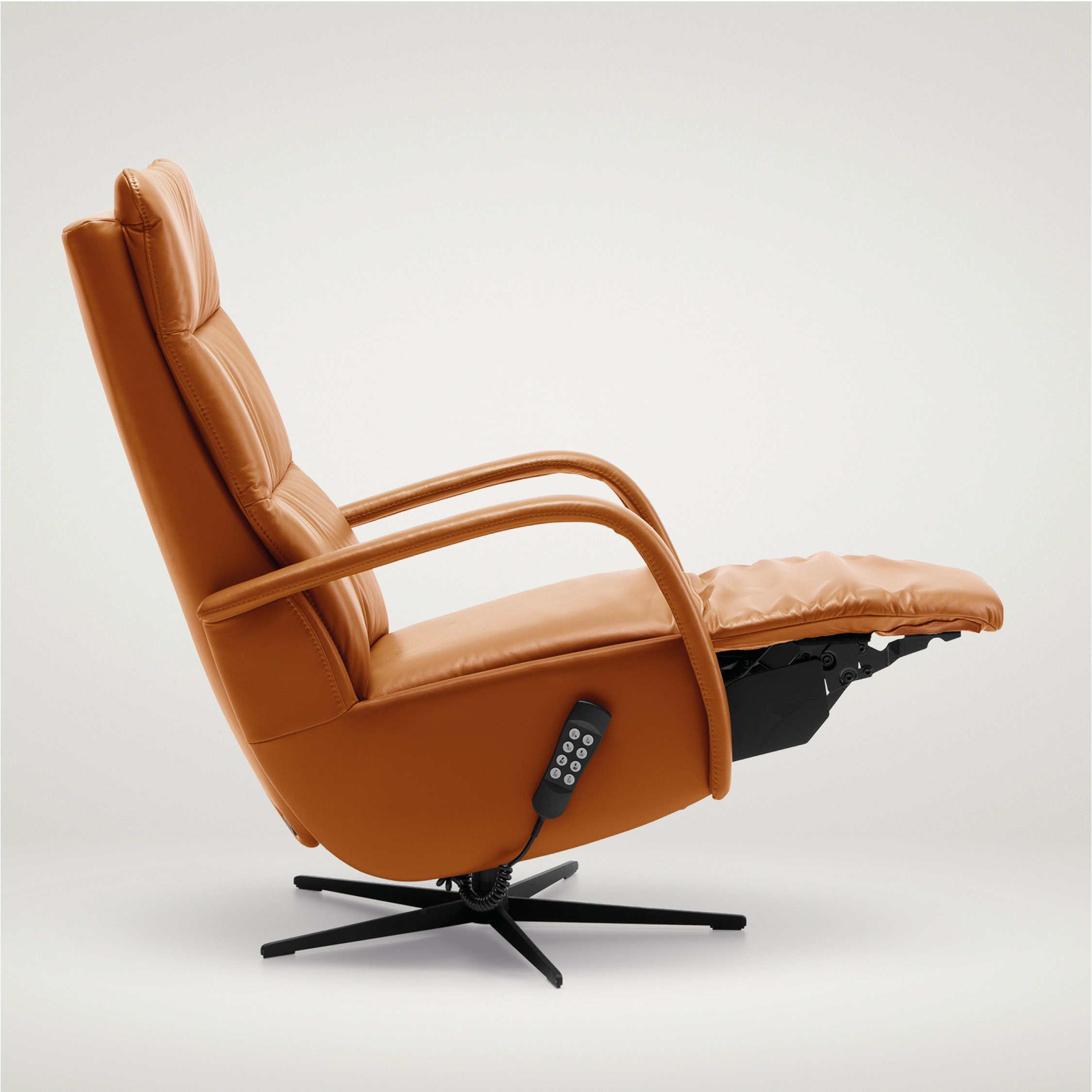 Met elektrische bediening zet u uw stoel moeiteloos in de gewenste positie. U kiest voor bedieningstoetsen in de armleuning of een bekabelde afstandsbediening met extra grote knoppen en duidelijke pictogrammen.