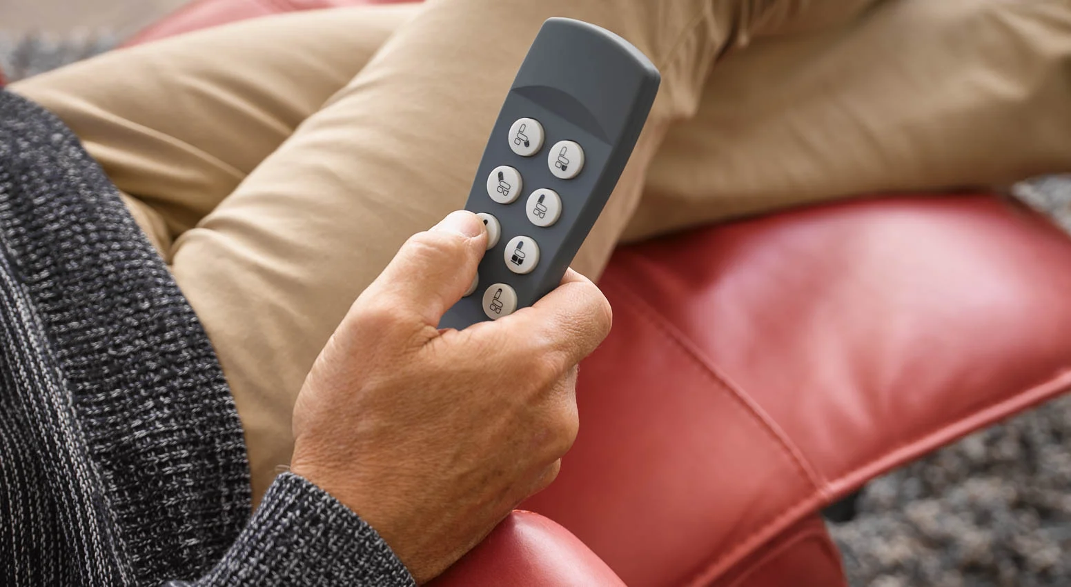 Een sta-op stoel kan op twee manieren worden bediend, met de tiptoetsen of met een afstandsbediening. De tiptoetsen kunnen aan de binnen- of buitenkant van de stoel worden geplaatst en met een lichte veeg zet u de sta-op stoel in de gewenste positie. Echter merken we dat bij het ouder worden de zenuwuiteinden van de vingers, en daarmee de vingertoppen, minder gevoel bevatten. Het kan dan als lastig worden ervaren om de juiste knop te vinden. Dan biedt de afstandsbediening uitkomst. U kunt de afstandsbediening naar voren halen en zien wat u indrukt.