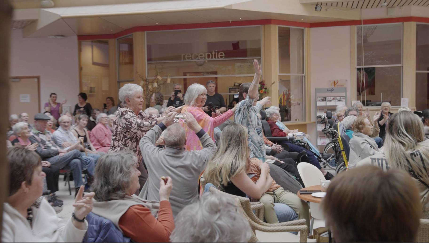Tijdens het optreden wordt iemand in het zonnetje gezet, iemand die zich inzet voor het verzorgings- op verpleeghuis. Een manier om voor de bewoners en de collega’s te laten zien dat ze de inspanningen waarderen.