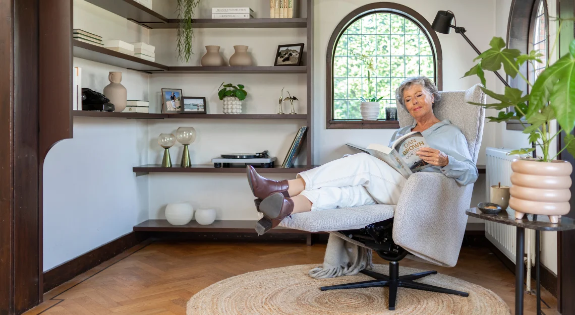 ‘’We genieten nu nog meer van onze vrije tijd. Ik kan nu heerlijk ontspannen in mijn stoel en neem graag een middag voor mezelf. Dan pak ik een boek en ben dan zo een paar uur verder. De stoel geeft me echt steun en daar ben ik heel blij mee. Onze ervaring met Velderhof stoelen is meer dan positief. Ik zou het iedereen aanbevelen", sluit Margriet af.