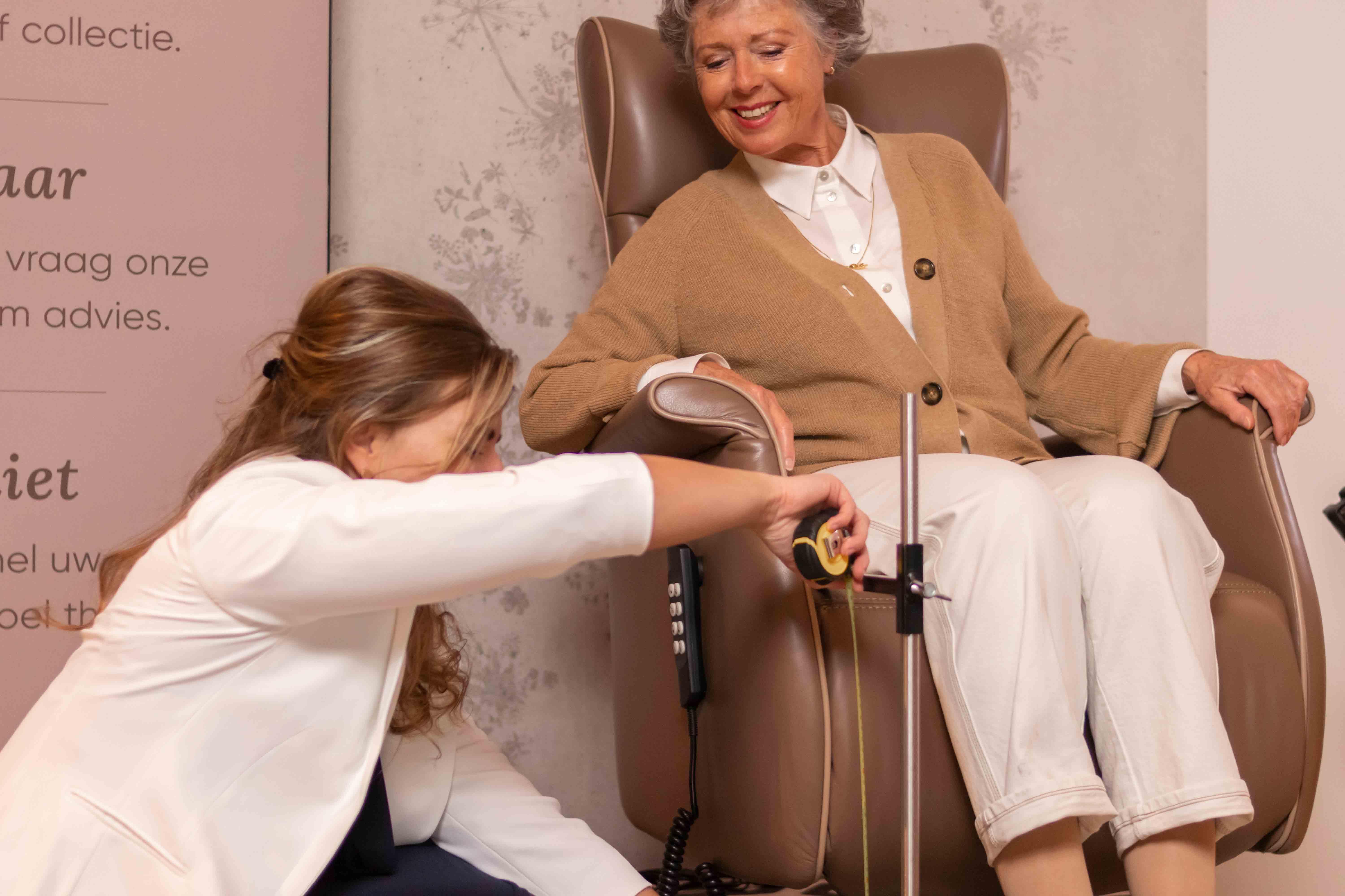 De stoel wordt volledig op uw lichaam afgesteld aan de hand van 21 meetpunten. Dit resulteert in een goede sta-op stoel die uw lichaam op de juiste manier ondersteunt. Middels een thuisdemonstratie kunt u de sta-op stoelen eenvoudig ervaren en direct zien hoe de stoel in uw woonkamer staat. Bezoekt u liever één van onze winkels? Dan heten we u natuurlijk ook van harte welkom.