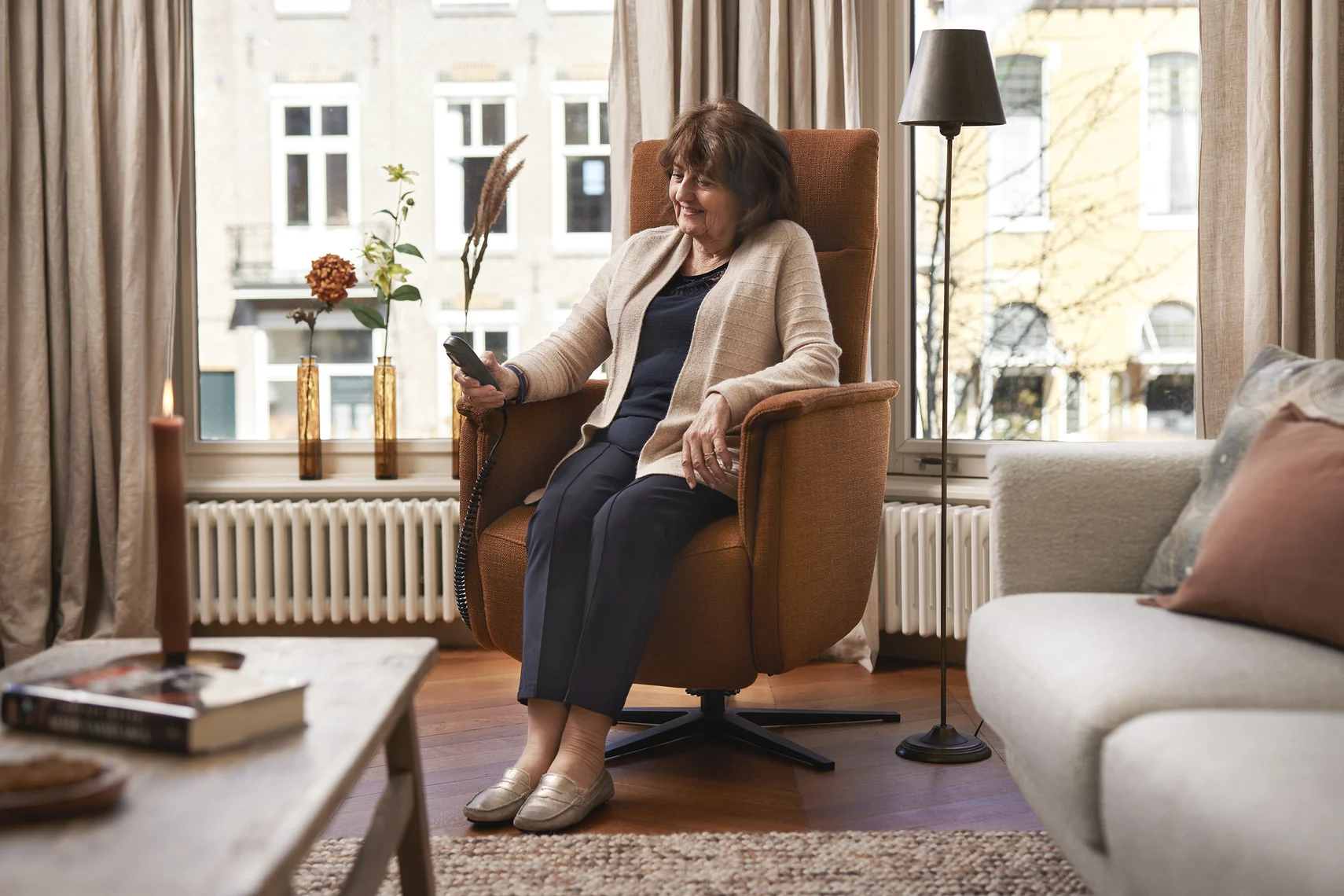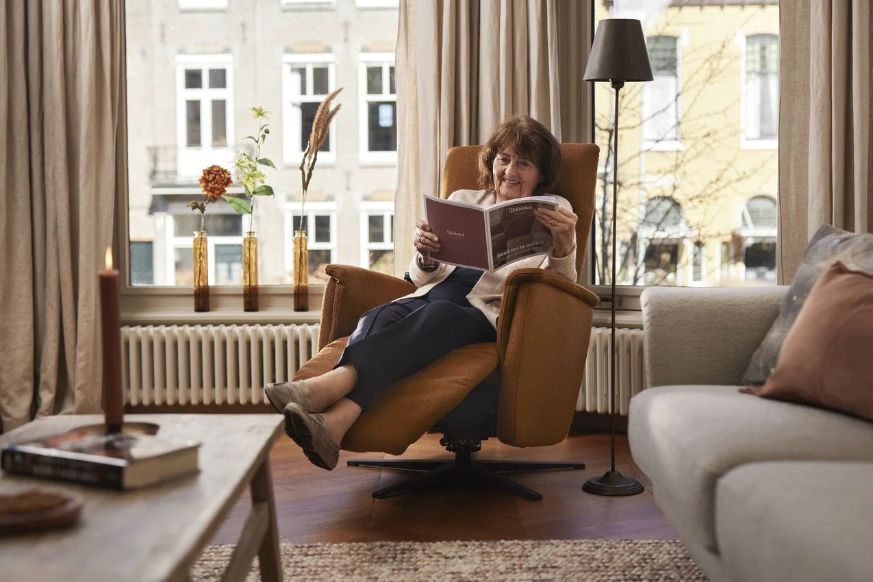 “Ik zit heerlijk in de stoel, hij geeft me écht steun en comfort. Als ik in de middag bel met mijn vriendinnen, heerlijk relaxed met een kopje thee, dan denk ik: wat ben ik toch blij met die stoel!” Marianne heeft, met het oog op de toekomst, uiteindelijk voor een sta-op stoel gekozen. Deze geeft haar meer stabiliteit. Het meest prettige van een sta-op stoel is volgens Marianne dat je gemakkelijk op kunt staan, zonder dat je hier kracht voor nodig hebt.