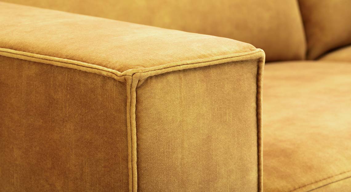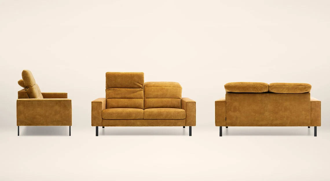 Verder kunt u uw bank een unieke uitstraling geven door te kiezen uit vier verschillende armleuningen. Of het nu gaat om een rechte of afgeronde leuning, u kunt de breedte ervan aanpassen aan uw persoonlijke voorkeur en de ruimtelijke eisen van uw woonkamer.