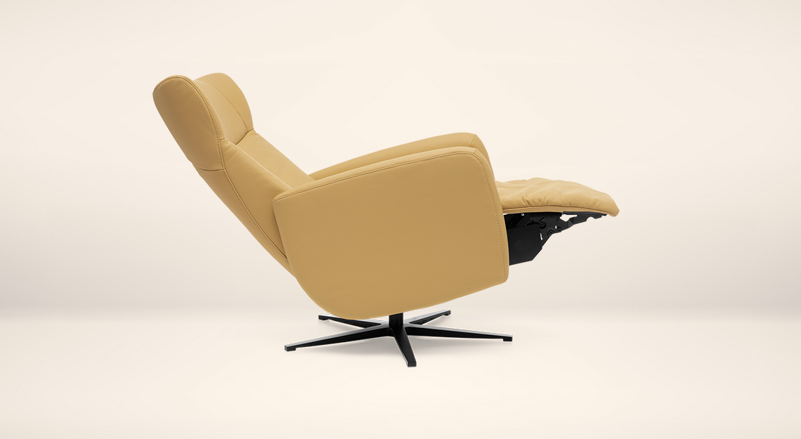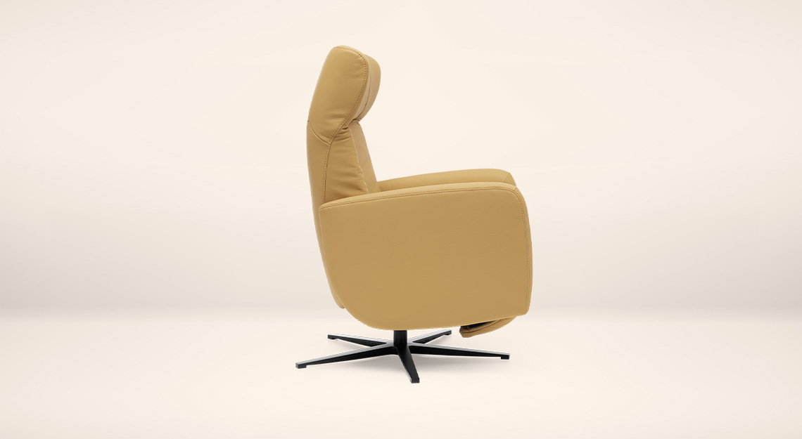 De Endine is stoel die de meeste mensen erg prettig vindt zitten. Het voelt meteen ondersteunend en comfortabel wanneer u plaatsneemt. De dichte armleuning geven een geborgen gevoel en wanneer u voor een draaivoet gaat ziet de stoel er nog steeds erg ruimtelijk uit. De ronde voetenklep zorgt ervoor dat de ruimte onder de knieën wordt opgevuld. Dat zorgt ervoor dat de knieën niet ‘op slot’ gaan. We zijn geneigd om bij het strekken van de benen om ze over elkaar te leggen. Wanneer de knieholte wordt opgevuld is dit niet meer nodig. Met als gevolg dat u heerlijk de benen kunt laten liggen en u vervolgens uitgerust kunt opstaan.