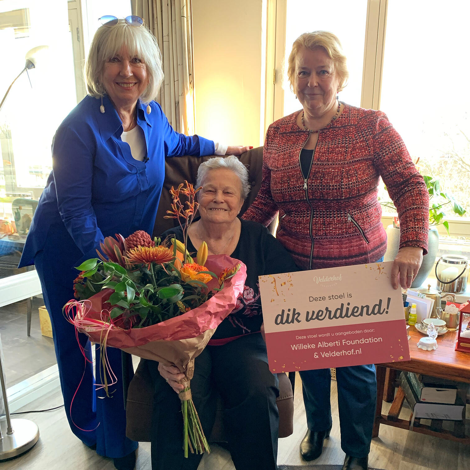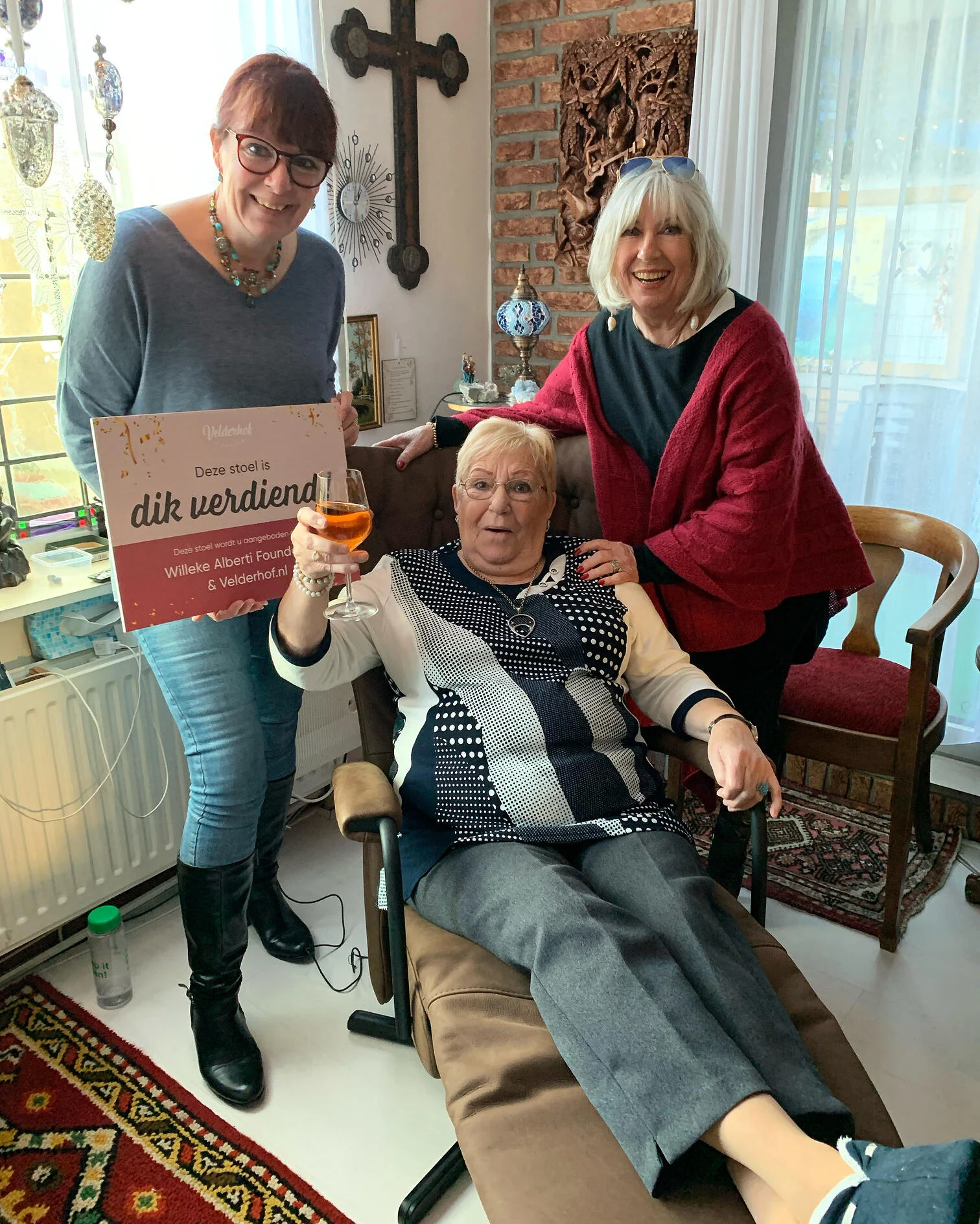 Willeke Alberti en Velderhof geven comfortabele relaxfauteuil cadeau