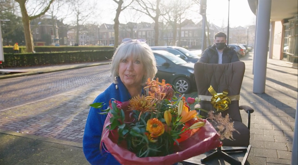 Willeke Alberti en Velderhof bij u op de stoep! Velderhof en de Willeke Alberti Foundation hebben de handen ineen geslagen en verrassen komend half jaar wekelijks iemand met een fijne relaxstoel op maat. Aan de hand van ingezonden aanmeldingen door iemand uit de omgeving wordt een gelukkige winnaar gekozen. En de winnaar of winnares is niet zomaar iemand, het is iemand die het echt verdient. Een mantelzorger, een vrijwilliger of bijvoorbeeld iemand die zich inzet voor ouderen. Nog meer dan ooit wordt hun inzet voor anderen gewaardeerd en daarom komt Willeke Alberti ze persoonlijk in het zonnetje zetten. Ze worden verrast met een feestelijk bezoekje en een prachtige gratis relaxstoel van Velderhof, waar ze na hun harde werken welverdiend in kunnen neerploffen!