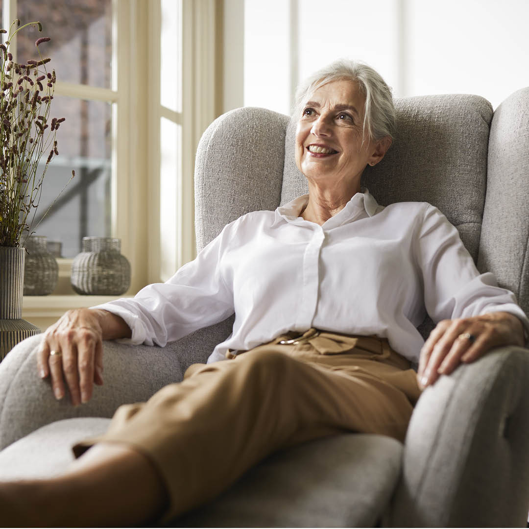 De relaxstoelen en sta-op-stoelen van Velderhof worden volledig op maat gemaakt. Dit betekent: een perfecte zithoogte, lendensteun waar u die nodig heeft en een rugleuning die uw lichaam echt volgt. Met de juiste stoel voorkomt u niet alleen pijnklachten, maar verbetert u ook uw houding en vitaliteit.