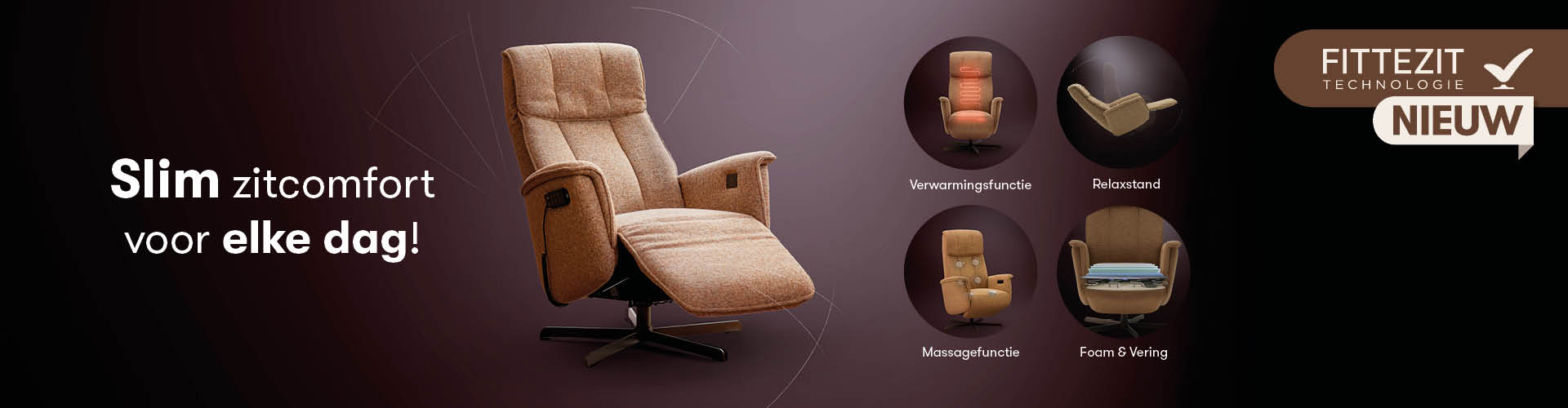 FitteZit staat voor Velderhof-stoelen die verder gaan dan standaard comfort. Het slimme ontwerp, gecombineerd met doordachte functies, zorgen ervoor dat de stoel volledig is afgestemd op uw lichaam. Geniet van een perfecte pasvorm, optimale ondersteuning en extra comfort dankzij relax- en sta-op opties, verwarming en massage.