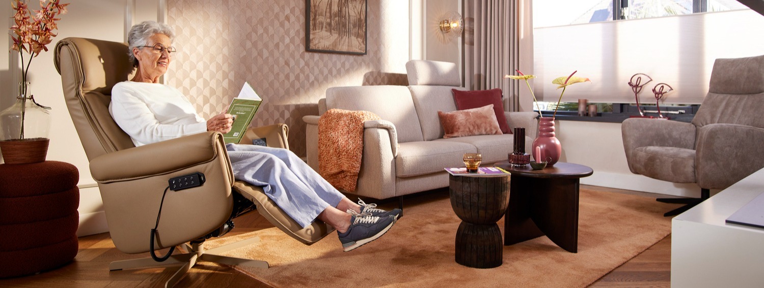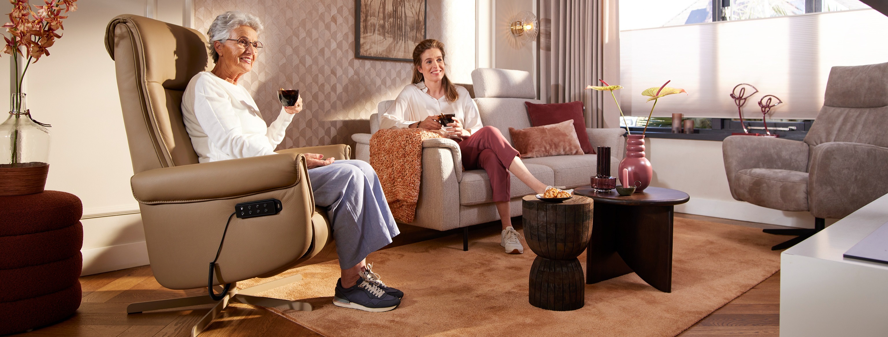 Johanna koos ervoor om gezellig met haar dochter naar de winkel in te gaan. Daar kon ze zelf ervaren hoe comfortabel de stoelen zijn en hoe moeiteloos de sta-op functie werkt. Een adviseur hielp haar bij het kiezen van de juiste ondersteuning zoals: extra lendensteun, een verstelbare rugleuning én een sta-op functie, om volledig voorbereid te zijn op de toekomst.