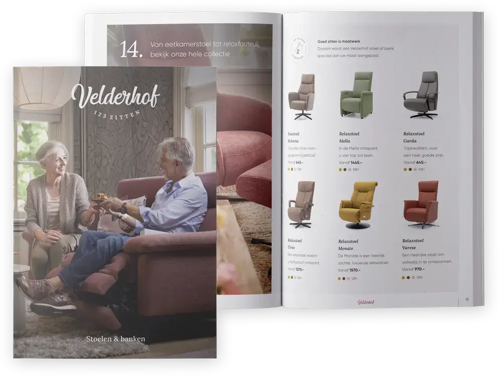 ​Een relaxstoel met verstelbare voetensteun van Velderhof biedt ultiem comfort en ondersteuning voor uw benen en voeten, waardoor u van top tot teen kunt ontspannen. Deze geïntegreerde voetensteun vouwt zich onder de zitting van de stoel en kan in verschillende posities worden gezet, wat niet alleen uw benen maar ook uw knieën op de juiste manier ondersteunt. Vraag hier onze gratis brochure met alle informatie of breng een bezoek aan een Velderhof showroom in uw buurt.